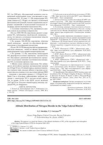 Статья: ВЫСОТНОЕ РАСПРЕДЕЛЕНИЕ ДИОКСИДА АЗОТА НА ТЕРРИТОРИИ ПРИВОЛЖСКОГО ФЕДЕРАЛЬНОГО ОКРУГА (2025)