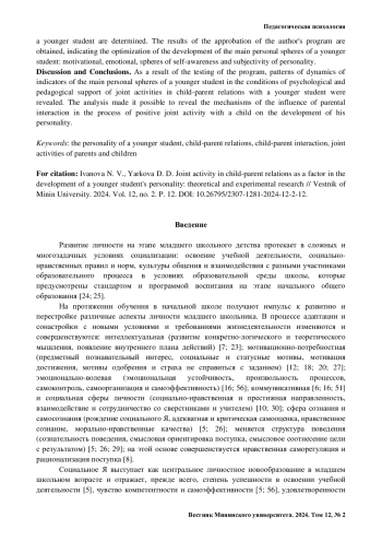 12. Иванова Н. В. Психолого-педагогическая модель полисубъектной личностноразвивающей образовательной среды на заключительном этапе начального общего образования: автореф. дис. ... д-ра психол. наук: 5.3.4. Рязань, 2022. 48 с.