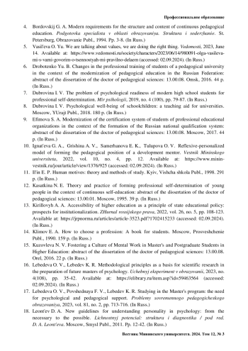 4. Бордовский Г. А. Современные требования к структуре и содержанию непрерывного педагогического образования // Подготовка специалиста в области образования. Структура и содержание. Санкт-Петербург: Образование, 1994. С. 3-8.