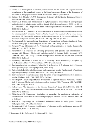 19. Львова А. С. Развитие профессионализма педагога в условиях системно-модульной организации образовательного процесса в магистратуре // автореф. дис. ... д-ра пед. наук: 13.00.08. Москва, 2020. 42 с.
