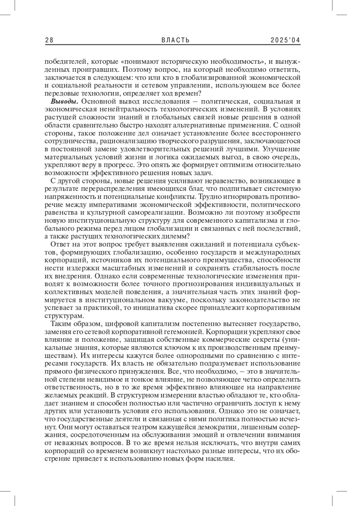РЫБАКОВ А. В. ТЕХНОЛОГИЧЕСКИЕ ИЗМЕНЕНИЯ И ГЛОБАЛИЗАЦИЯ // ВЛАСТЬ. 2025. ТОМ 33 № 4