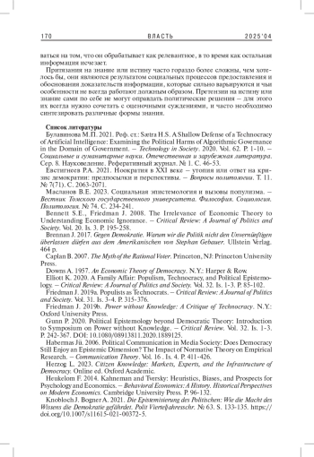 9. Friedman J. 2019a. Populists as Technocrats. - Critical Review. Vol. 31. Is. 3-4. Р. 315-376.