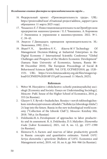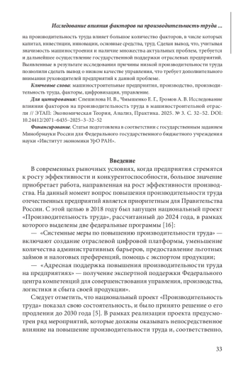 Статья: ИССЛЕДОВАНИЕ ВЛИЯНИЯ ФАКТОРОВ НА ПРОИЗВОДИТЕЛЬНОСТЬ ТРУДА В МАШИНОСТРОИТЕЛЬНОЙ ОТРАСЛИ (2025)