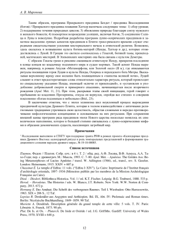 Представлен анализ основных праздников Египта греко-римского времени во взаимосвязи с античной религией мистерий, оказавшей значительное влияние на изменения в египетской праздничной культуре. Изучение храмовых рельефов Египта, включая календарные списки, а также сцены праздников Осириса месяца хойак, праздника Коронации священного сокола, праздника Воссоединения (богов) и лунных праздников, показывает, что, начиная с эллинистической эпохи, в программах египетских праздников преобладают сюжеты мрачного мистического характера, вбирающие в себя мифологические сказания об Осирисе и Дионисе-Загрее. В концепции праздников усиливаются свойственные античным мистериям принципы дуализма идей и вещей, предполагающие погружение участников ритуалов во мрак и затем их неожиданный выход к ослепительному свету, что рассматривалось в соотношении с этапами инициации, когда душа переходила из материального мира в духовный, и с посмертным выходом души из темных глубин преисподней в Элизиум, или Острова блаженных, с которыми ассоциировались египетские Поля Иару. Такой дуалистический аспект праздника выражен, например, в оформлении храмов Дендеры и Эдфу, где находятся изображения процессий жрецов, спускающихся в темные комнаты и поднимающихся на крышу храма со статуями божеств для проведения обряда Xnm itn («единение с солнечным диском»). При этом свойственное древнеегипетской религии равновесие между солярными и лунными культами в греко-римской период нарушается, и в религиозной практике акцент смещается в сторону осирического культа, соотнесенного с фазами луны.