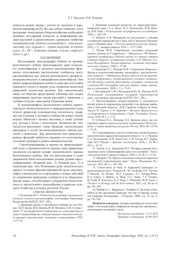 6. Королева Е. Г., Петрова И. Ф. Сохранение биоразнообразия в сельскохозяйственных ландшафтах: агроэкологические аспекты // “Материалы Всероссийской научно-практической конференции с международным участием, посвященной 90-летию создания факультета географии, геоэкологии и туризма ВГУ География, экология, туризм: новые горизонты исследований”, 2024, т. 1, с. 73-81. EDN: MRTADK
