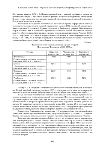 Статья посвящена исследованию экономической деятельности женщин купеческого сословия Центрального Черноземья в конце XIX - начале XX в. в сфере торговли алкогольной продукцией (винной торговли). Они торговали всеми разновидностями алкогольных напитков: вином, водками, пивом, а также напитками, приготовленными на основе меда. Характеризуя персонифицированный образ предпринимательниц из купеческой среды, чьи деловые интересы распространялась на винную торговлю, следует отметить самостоятельный характер их деловой активности. Подавляющее большинство выявленных персоналий носили внутрисословный статус «купчиха», т. е. под своим именем оформили получение гильдейского и промыслового свидетельства, тем самым зафиксировав независимый от мужчины (мужа, отца, брата, сына) характер своей экономической деятельности. Купчихи торговали спиртными напитками дифференцированным образом: в оптовом варианте (со складов), в розничном - на вынос (в винных лавках, при бакалейных лавках, в ренсковых погребах с иностранными винами) и «распивочно» (в так называемых питейных заведениях, трактирах). Наряду с занятием винной торговлей, они выстраивали свои индивидуальные бизнес-стратегии в совмещении разных типов предприятий - торговых, производственных (заводы - спиртоочистительные, свечные, маслобойные, мельницы, пенькотрепальные), сервисных (частное кредитование - ростовщичество).
