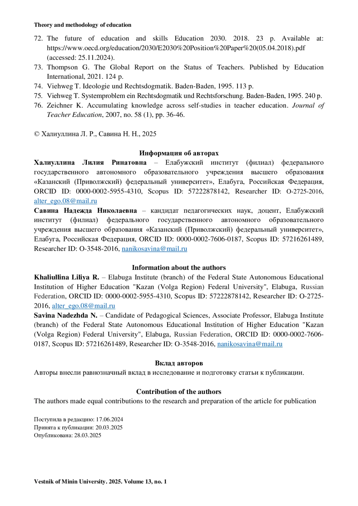 73. Thompson G. The Global Report on the Status of Teachers. Published by Education International, 2021. 124 p.