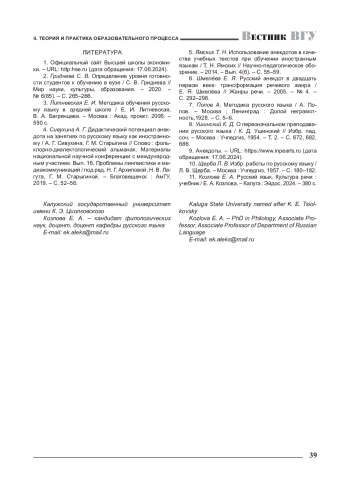 НОВИКОВА Е. А. ДИДАКТИЧЕСКИЙ ПОТЕНЦИАЛ АНЕКДОТОВ ПРИ ПРЕПОДАВАНИИ ЯЗЫКОВЕДЧЕСКИХ ДИСЦИПЛИН В ВУЗЕ // ВЕСТНИК ВОРОНЕЖСКОГО ГОСУДАРСТВЕННОГО УНИВЕРСИТЕТА. СЕРИЯ: ПРОБЛЕМЫ ВЫСШЕГО ОБРАЗОВАНИЯ. 2024. № 4