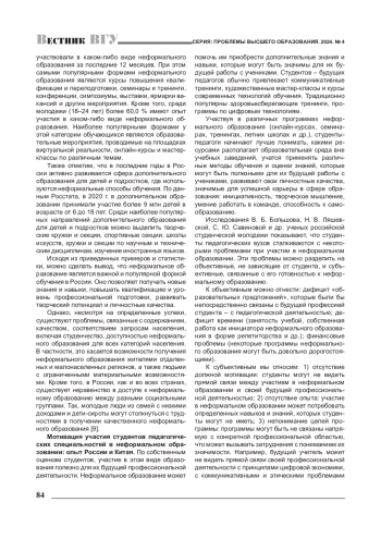 Ключевые фразы: неформальное образование, виды неформального образования, мотивация участия, ДОСТУПНОСТЬ, онлайн-курсы, дополнительные компетенции