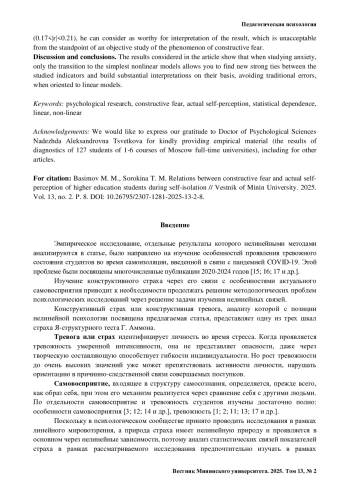 7. Басимов М. М. Причины роста деструктивного страха при трансформации отдельных компонент актуального самовосприятия // Вестник университета. 2022. № 12. С. 207-216.