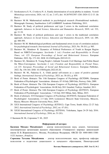 21. Basimov M. M. Methodological problems and fundamental errors in use of correlation analysis for psychological research // International Journal of Psychology. 2023. No. 58 (S1). P. 985.