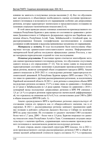Введение. В аспекте преодоления неравенства социально-экономического развития регионов РФ важно оценивать наличие и использование производственных ресурсов в каждом конкретном регионе, поскольку от его состояния зависят возможности достижения поставленных целей по созданию продукции и обеспечению благосостояния населения, поскольку посредством организации объектов производства, предоставляющих рабочие места, он оказывает непосредственное