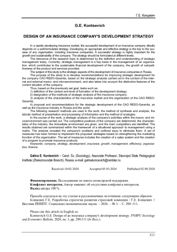 В условиях стремительно развивающегося страхового рынка успешное развитие страховой компании напрямую зависит от правильно сформулированной стратегии. Разработка целесообразной и эффективной стратегии является ключом к успеху любой организации, включая страховые компании. Успешная стратегия имеет высокую значимость для роста и устойчивости компании. Стратегия должна быть сформулирована на разных уровнях. Актуальность темы исследования обусловливается определением и пониманием стратегического управления на сегодняшний день. В настоящее время стратегическое управление - это ключевая основа в осуществлении управления организацией, которая способствует устойчивому обеспечению финансового развития компании, росту конкурентоспособности производимого продукта и оказываемых услуг. Предметом данного исследования являются стратегические аспекты развития страховых компаний в России. Цель исследования - разработка рекомендаций по улучшению стратегического развития для компании САО «РЕСО-Гарантия», опирается на осуществленный стратегический анализ в разрезе внутренней и внешней макро- и микросреды, а также принимает во внимание отличительные черты текущей ситуации компании. Таким образом, на основе ранее поставленной цели в работе решаются такие задачи: 1) определение содержания и уровня формирования стратегии развития; 2) обозначение методов стратегического анализа страховой компании; 3) анализ характеристик страхового рынка и организации САО «РЕСО-Гарантия»; 4) предложение и рекомендации по стратегическому развитию САО «РЕСО-Гарантия», а также отрасли страхования в России и мире. В работе используются следующие методы исследования: метод синтеза и анализа, табличный метод представления и обработки информации и метод аналогий. В ходе работы проведен стратегический анализ деятельности компании в рамках макро- и микросреды. Определены конкурентные позиции компании, даны характеристики отрасли, ближайшего окружения, а также определены основные конкуренты. Полученные результаты обобщены в рамках ситуационного подхода к управлению с использованием матрицы. Проведенный анализ выявил проблемы компании и наметил пути их устранения. Сформированный комплекс мер по реализации предложенных стратегий, основанный на усилении маркетинговой функции организации. Комплекс мероприятий включает в себя создание системы продаж и создание программы продвижения страховых продуктов.