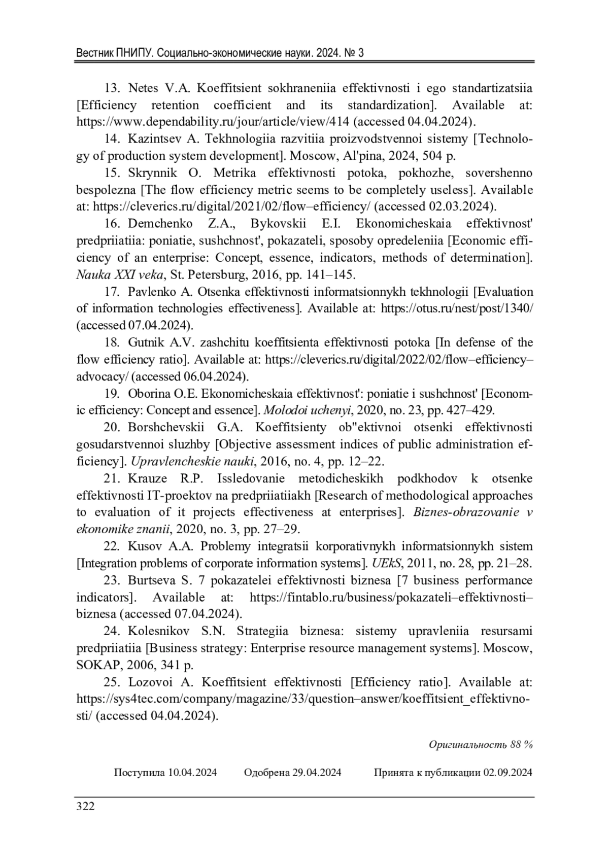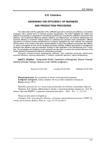 ЧИЖИКОВ Д. Д. ОЦЕНКА ЭФФЕКТИВНОСТИ БИЗНЕС- И ПРОИЗВОДСТВЕННЫХ ПРОЦЕССОВ // ВЕСТНИК ПЕРМСКОГО НАЦИОНАЛЬНОГО ИССЛЕДОВАТЕЛЬСКОГО ПОЛИТЕХНИЧЕСКОГО УНИВЕРСИТЕТА. СОЦИАЛЬНО-ЭКОНОМИЧЕСКИЕ НАУКИ. 2024. № 3