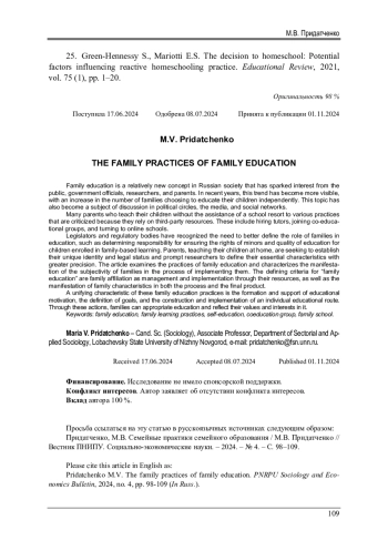 25. Green-Hennessy, S. The decision to homeschool: potential factors influencing reactive homeschooling practice / S. Green-Hennessy, E.S. Mariotti // Educational Review. - 2021. - Vol. 75(1). - P. 1-20.