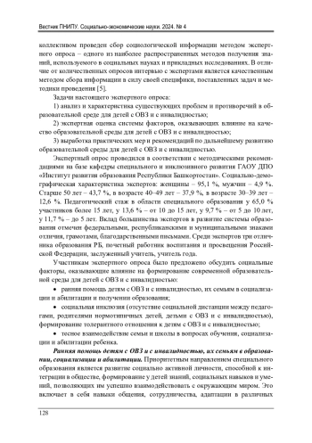 Ключевые фразы: специальное образование, ДЕТИ С ОГРАНИЧЕННЫМИ ВОЗМОЖНОСТЯМИ ЗДОРОВЬЯ, дети-инвалиды, социальные факторы, образовательная среда, ЭКСПЕРТНЫЙ ОПРОС, СОЦИОЛОГИЧЕСКОЕ ИССЛЕДОВАНИЕ