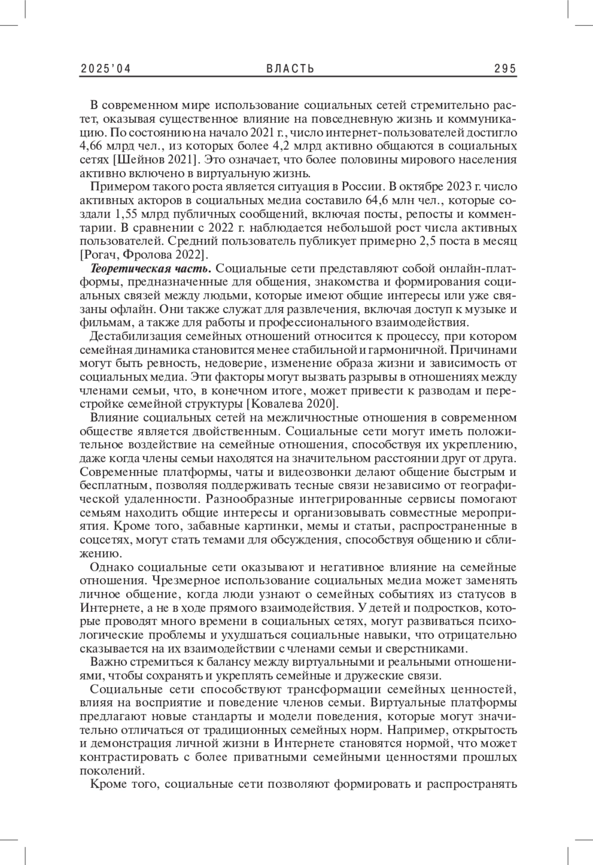 2. Рогач О.В., Фролова Е.В. 2022. Анализ влияния социальных сетей на современных подростков: ключевые проблемы и деструктивные последствия. - Вестник Пермского университета. Философия. Психология. Социология. № 2. С. 305-314. EDN: JRNDER