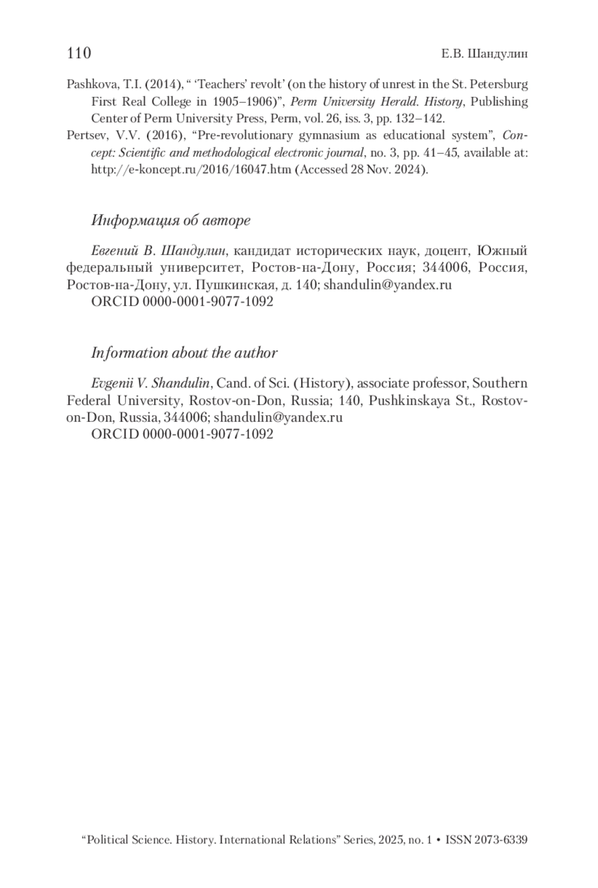 4. Пашкова 2014 - Пашкова Т.И. «Учительский бунт» (к истории волнений в Санкт-Петербургском Первом реальном училище в 1905-1906 гг.) // Вестник Пермского университета. Серия: «История». 2014. Вып. 3 (26). С. 132-142.