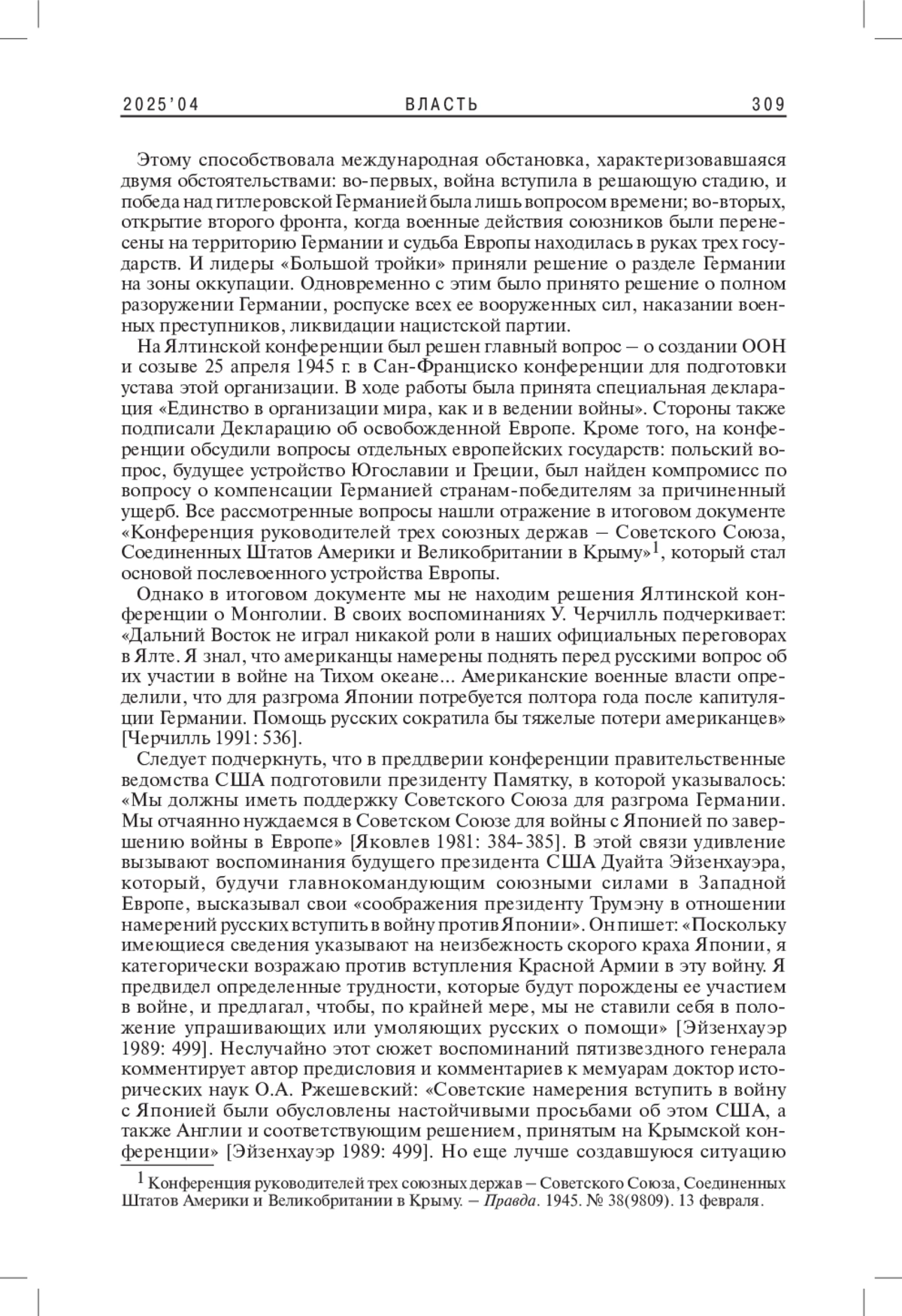 1. Бельянинов А.Ю., Смирнов С.К., Будченко Л.И., Кокорин С.Л., Назаров С.Д., Болдырев Ю.Ф., Заблоцкая А.Г., Назарова О.В., Евдокимова Т.В., Аргасцева С.А., Косовцева С.В., Самко С.М., Яковлева Л.Е., Котова И.В. 2020. К истории Ялтинской конференции руководителей СССР, США и Великобритании. - Современная научная мысль. № 1. С. 73-97. EDN: MAKVZR