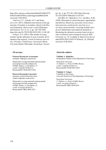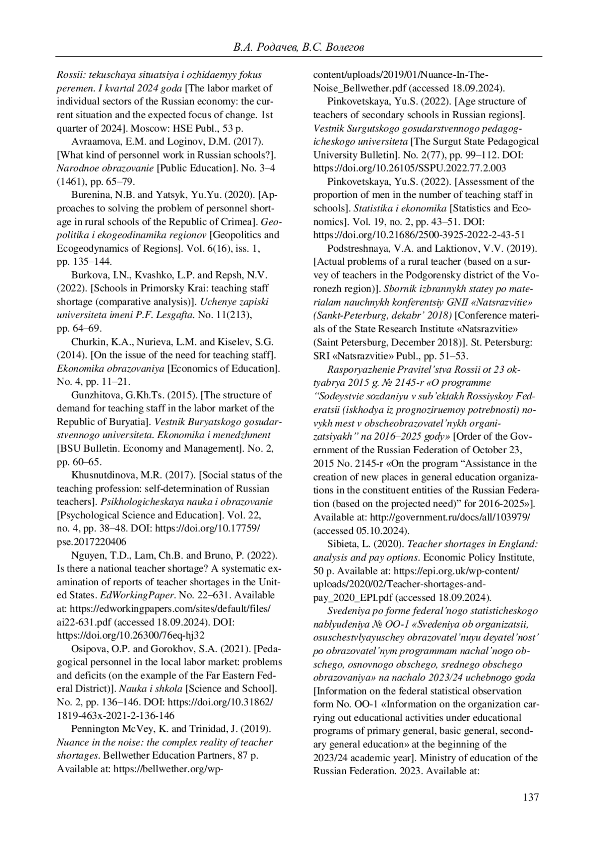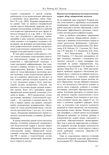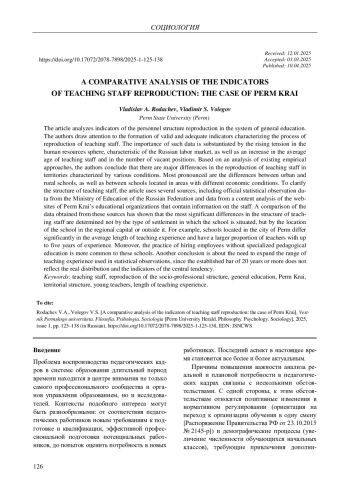 РОДАЧЕВ В. А., ВОЛЕГОВ В. С. СРАВНИТЕЛЬНЫЙ АНАЛИЗ ПОКАЗАТЕЛЕЙ ВОСПРОИЗВОДСТВА ПЕДАГОГИЧЕСКИХ КАДРОВ: КЕЙС ПЕРМСКОГО КРАЯ // ВЕСТНИК ПЕРМСКОГО УНИВЕРСИТЕТА. ФИЛОСОФИЯ. ПСИХОЛОГИЯ. СОЦИОЛОГИЯ. 2025. № 1