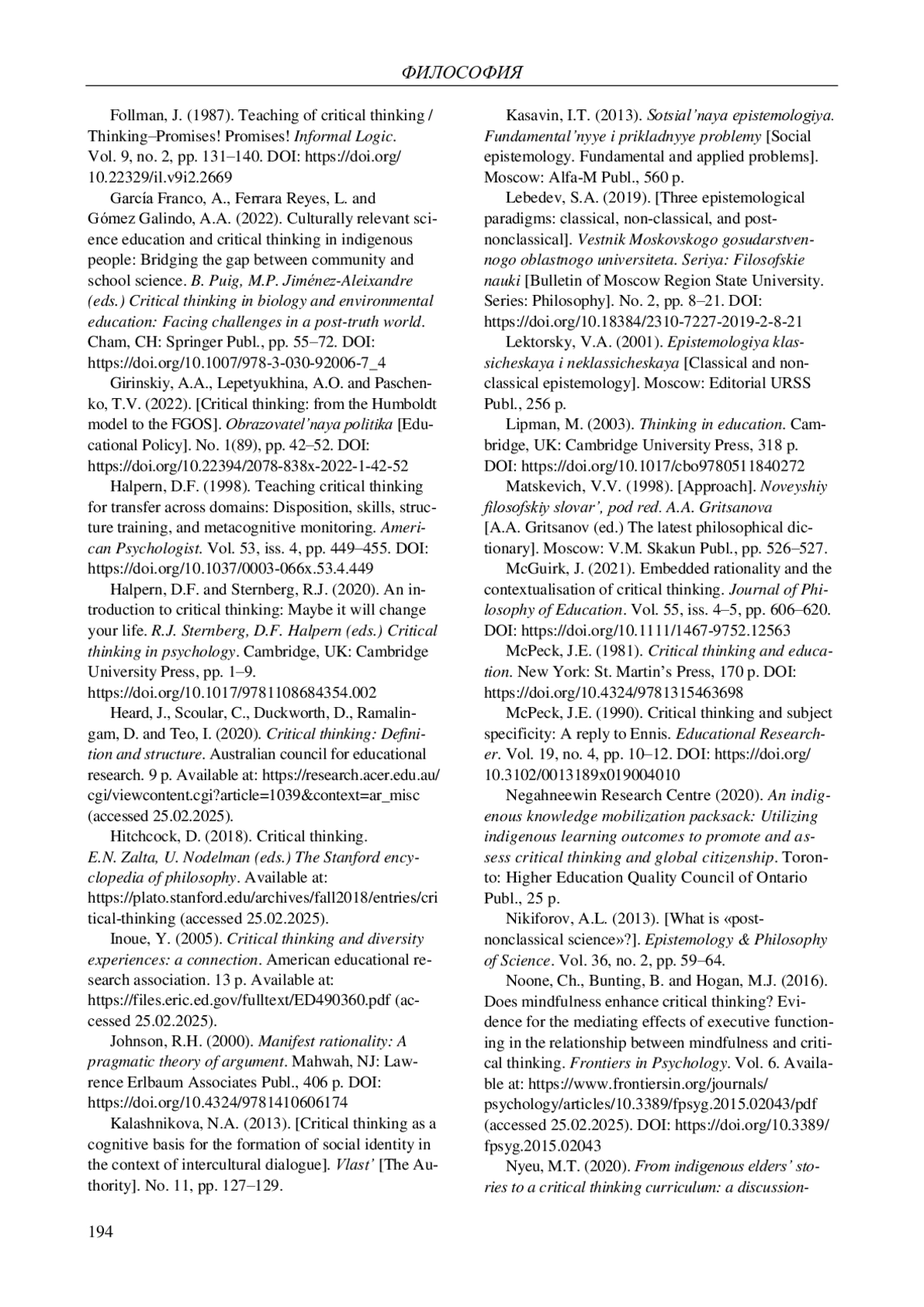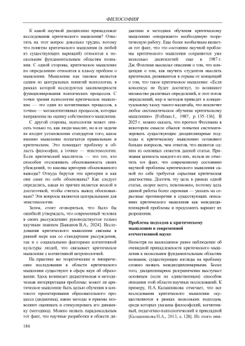 Статья: КРИТИЧЕСКОЕ МЫШЛЕНИЕ КАК МЕЖДИСЦИПЛИНАРНАЯ НАУЧНАЯ ПРОБЛЕМА (2025)