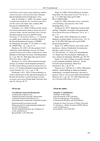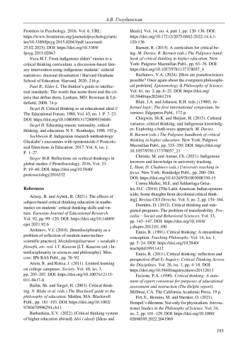 ГОЛУБИНСКАЯ А. В. КРИТИЧЕСКОЕ МЫШЛЕНИЕ КАК МЕЖДИСЦИПЛИНАРНАЯ НАУЧНАЯ ПРОБЛЕМА // ВЕСТНИК ПЕРМСКОГО УНИВЕРСИТЕТА. ФИЛОСОФИЯ. ПСИХОЛОГИЯ. СОЦИОЛОГИЯ. 2025. № 2