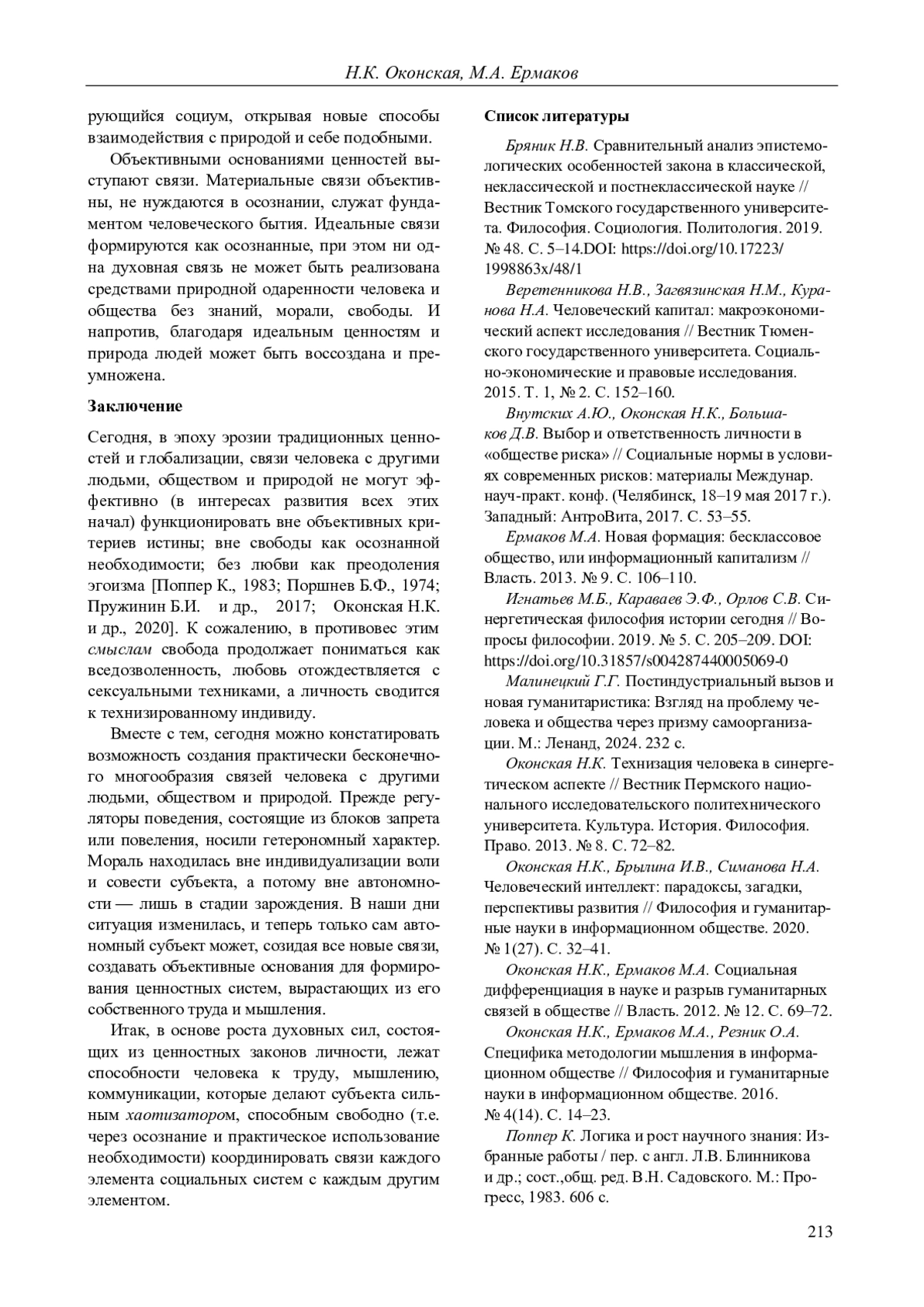 9. Оконская Н.К., Ермаков М.А. Социальная дифференциация в науке и разрыв гуманитарных связей в обществе // Власть. 2012. № 12. С. 69-72. EDN: PONXYZ