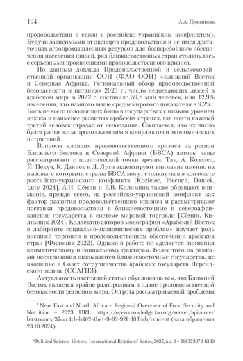 1. Сёмин, Килимник 2024 - Сёмин А.Н., Килимник Е.В. Поставки продовольствия в страны Cеверной Африки и Ближнего Востока и их влияние на продовольственную безопасность в мире // Агропродовольственная политика России. 2023. № 2. С. 51-56.