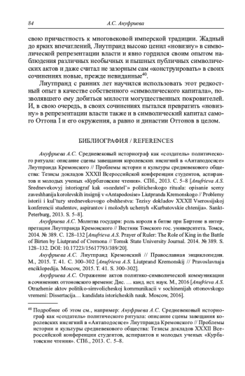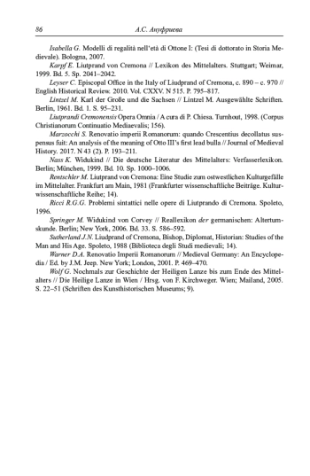 АНУФРИЕВА А. С. МОТИВ "НОВИЗНЫ" В ОПИСАНИЯХ АКТОВ РЕПРЕЗЕНТАЦИИ ВЛАСТИ У ЛИУТПРАНДА КРЕМОНСКОГО // СРЕДНИЕ ВЕКА. 2021. Т. 82 № 2