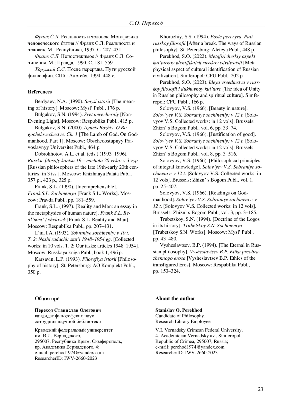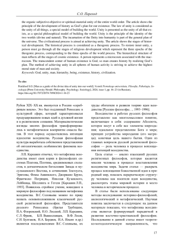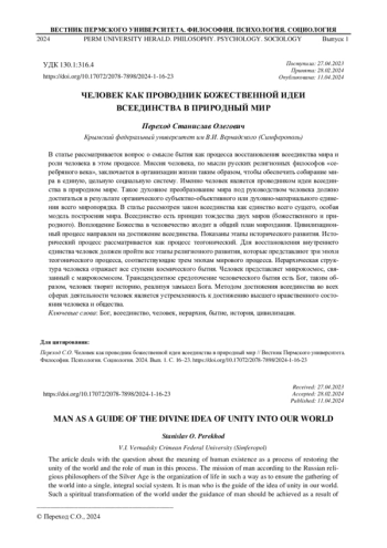ПЕРЕХОД С. О. ЧЕЛОВЕК КАК ПРОВОДНИК БОЖЕСТВЕННОЙ ИДЕИ ВСЕЕДИНСТВА В ПРИРОДНЫЙ МИР // ВЕСТНИК ПЕРМСКОГО УНИВЕРСИТЕТА. ФИЛОСОФИЯ. ПСИХОЛОГИЯ. СОЦИОЛОГИЯ. 2024. № 1