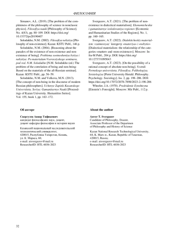 8. Свергузов А.Т. О возможности рациональной концепции абсолютного небытия // Вестник Пермского университета. Философия. Психология. Социология. 2023. Вып. 2. С. 198-206. DOI: 10.17072/2078-7898/2023-2-198-206 EDN: QYRHXN