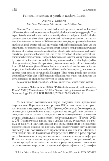 3. Грачев 2023 - Грачев М.Н. Политическая наука как проект ЮНЕСКО: К 75-летию Международной конференции «Методы в политической науке» // Вестник РГГУ. Серия «Политология. История. Международные отношения». 2023. № 3. С. 12-27.