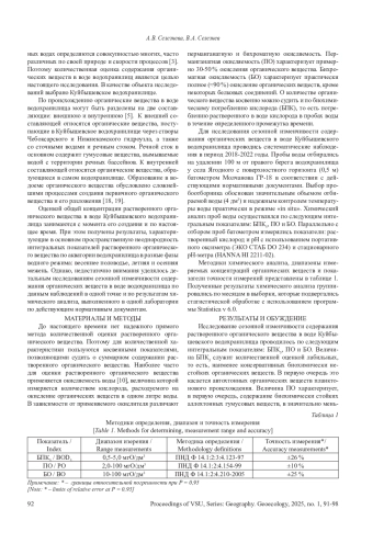 Для исследования сезонной изменчивости содержания органических веществ в воде Куйбышевского водохранилища проводись систематические наблюдения в период 2018-2022 годы. Пробы воды отбирались на удалении 100 м от правого берега водохранилища у села Ягодного с поверхностного горизонта (0,5 м) батометром Молчанова ГР-18 в соответствии с действующими нормативными документами. Выбор пробоотборника обоснован значительным объемом отбираемой воды (4 дм3 ) и надежным контролем температуры воды практически в режиме «in situ». Химический анализ проб воды осуществлялся по следующим интегральным показателям: БПК5, ПО и БО. Параллельно с отбором проб батометром измерялись показатели: растворенный кислород и pH с использованием портативного оксиметра (ЭКО СТАБ DО 234) и стационарного pH-метра (HANNA HI 2211-02).