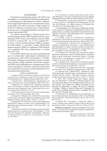 6. Моисеенко Т. И., Дину М. И. Биогеохимия природных органических веществ в водах суши: распределение и изменчивость при потеплении климата // Геохимия, 2023, т. 68, №2, с. 187-196. EDN: CLVOCI