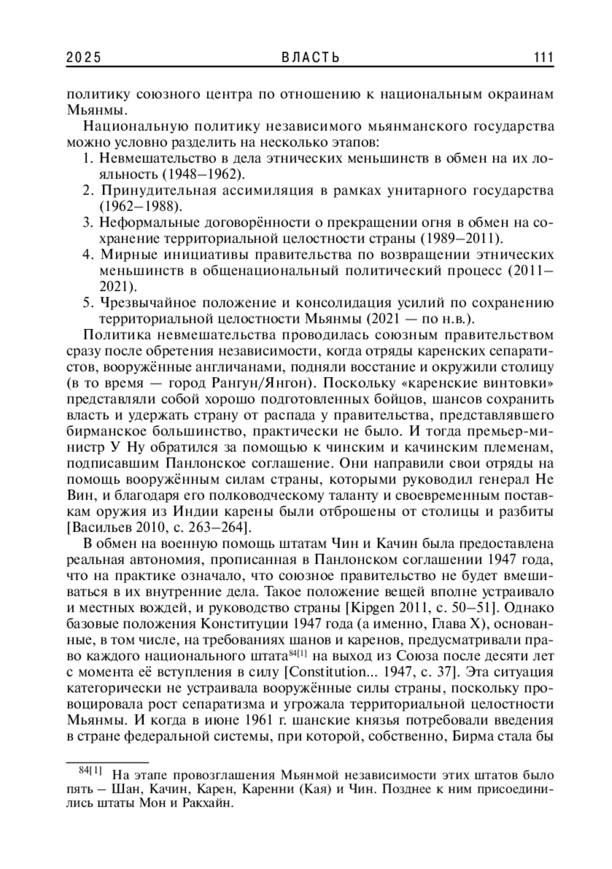 6. Kipgen, Nehginpao. Political Change in Burma: Transition from Democracy to Military Dictatorship (1948-62) // Economic and Political Weekly. May 2011. Vol. 46, №20. С. 48-55.