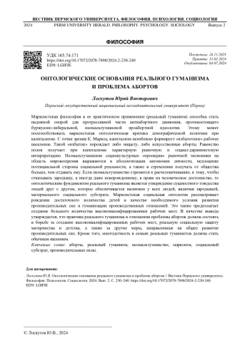 Марксистская философия в ее практическом применении (реальный гуманизм) способна стать надежной опорой для прогрессивной части антиабортного движения, противостоящего буржуазно-либеральной, неомальтузианской проабортной идеологии. Этому может поспособствовать марксистская онтологическая критика демографической политики при капитализме. С точки зрения К. Маркса, капитализм неизбежно формирует «избыточное» рабочее население. Такой «избыток» порождает либо нищету, либо искусственные аборты. Равенство полов получает при капитализме характерную рыночную и социал-дарвинистскую интерпретацию. Неомальтузианские социокультурные «проекции» рыночной экономики на область мировоззрения выражаются в абсолютизации автономии личности, недооценке потенциальной стороны социальной реальности, а также в стремлении получать от общества больше, чем отдавать ему. Если неомальтузианство стремится к расчеловечиванию, к тому, чтобы отказывать зародышу, а иногда даже новорожденному, в праве на человеческое достоинство, то онтологическим фундаментом реального гуманизма является утверждение сущностного тождества людей друг с другом, которое обеспечивается наличием у всех людей, включая зародышей, материального социального субстрата. Марксистская социальная онтология рассматривает рождение достаточного количества детей в качестве необходимого условия развития производительных сил и гуманизации производственных отношений. Это также предполагает создание большого количества высококвалифицированных рабочих мест. В качестве вывода утверждается, что практика реального гуманизма в отношении проблемы абортов должна состоять в борьбе за создание высококвалифицированных рабочих мест, реальную социальную защиту материнства и детства, а также за другие меры, направленные на общее развитие производительных сил. Кроме того, многодетность в семьях реальных гуманистов должна стать обычным явлением.