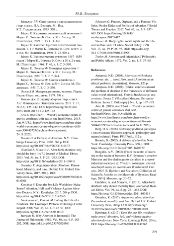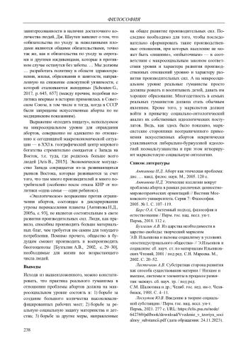 2. Антипова Н.Д. Этические коллизии вокруг проблемы аборта в рамках различных ценностно-мировоззренческих ориентаций // Вестник Московского университета. Серия 7: Философия. 2005. № 1. С. 107-119. EDN: JWKNZP