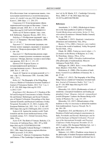 1. Антощенко В.И. Мифологические персонажи в государственном пантеоне духов во Вьетнаме // Вестник Московского университета. Серия 13: Востоковедение. 2002. № 4. С. 108-131.