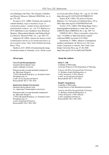 7. Старикова Е.О. Конструирование образа национальной культуры во Вьетнаме // Азия и Африка сегодня. 2020. № 1. С. 61-65. DOI: 10.31857/s032150750008525-9 EDN: PBTJGW