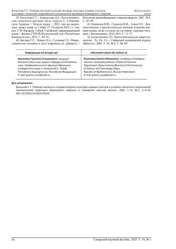 2. Семенова И.Н., Рафикова Ю.С., Суюндуков Я.Т., Рафиков С.Ш., Биктимерова Г.Я. Эколого-гигиеническая оценка загрязнения почв территорий отработанных рудников тяжёлыми металлами (на примере Башкирского Зауралья) // Современные проблемы науки и образования. 2017. № 1. https://science-education.ru/ru/article/view?id=26021.
