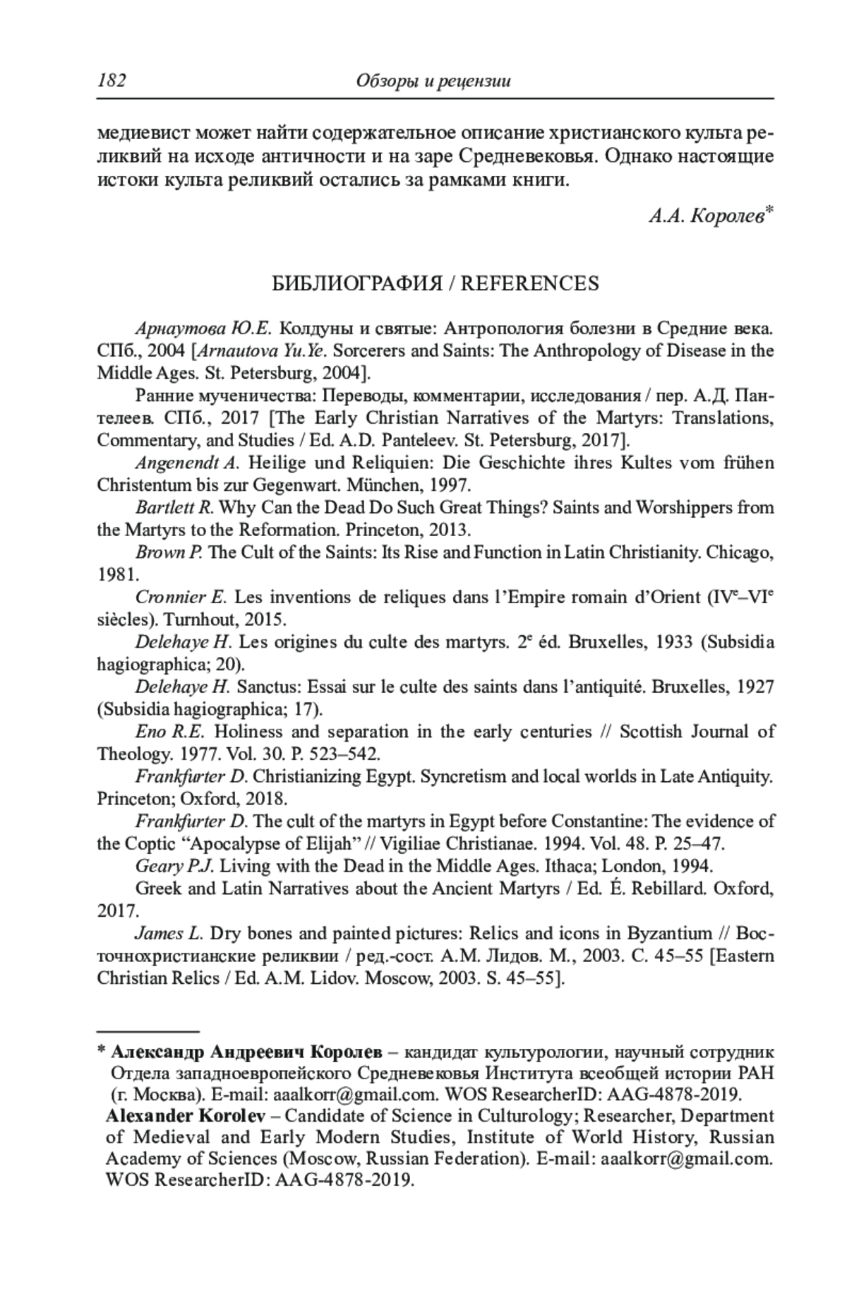 1. Арнаутова Ю.Е. Колдуны и святые: Антропология болезни в Средние века. СПб., 2004.