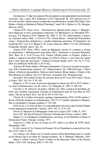 4. Уваров П.Ю. Чума 1580-х годов во Франции: взгляд из столицы и взгляд из провинции // Французский ежегодник 2021: Эпидемии в истории Франции. 2021. Вып. 54. C. 9-42. DOI: 10.32608/0235-4349-2021-1-54-9-42