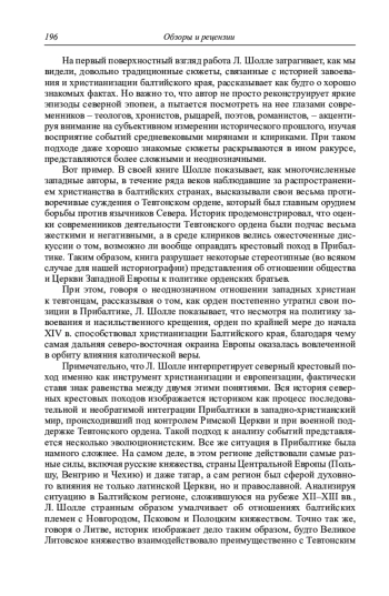 Книга швейцарского историка Лоика Шолле посвящена истории северных крестовых походов. Как известно, со времен окончания «холодной войны» историография этого сюжета существенно обновилась1, свою лепту в его изучение внесли и российские историки (М. Б. Бессуднова, В. И. Матузова, Е. Л. Назарова, Д. Г. Хрусталев и др.).