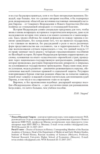 УВАРОВ П. Ю. БОЛЬШЕ, ЧЕМ ПОСОБИЕ НИДЕРЛАНДСКИЕ ОБЛАСТИ ОТ БАТАВОВ И БЕЛТОВ ДО БЕЛЬГИЙСКОЙ РЕВОЛЮЦИИ 1830 Г.: УЧЕБНОЕ ПОСОБИЕ / ОТВ. РЕД. Г. А. ШАТОХИНА-МОРДВИНЦЕВА. М.: ГАУГН-ПРЕСС, 2018. 252 С., ИЛЛ., КАРТЫ // СРЕДНИЕ ВЕКА. 2020. Т. 81 № 1
