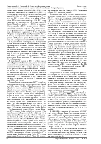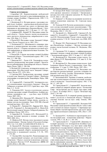 Статья: ИКСОДОВЫЕ КЛЕЩИ МЕЛКИХ МЛЕКОПИТАЮЩИХ ОСНОВНЫХ ВЫДЕЛОВ ТАЁЖНОЙ ЗОНЫ ЗАПАДНО-СИБИРСКОЙ РАВНИНЫ (2025)
