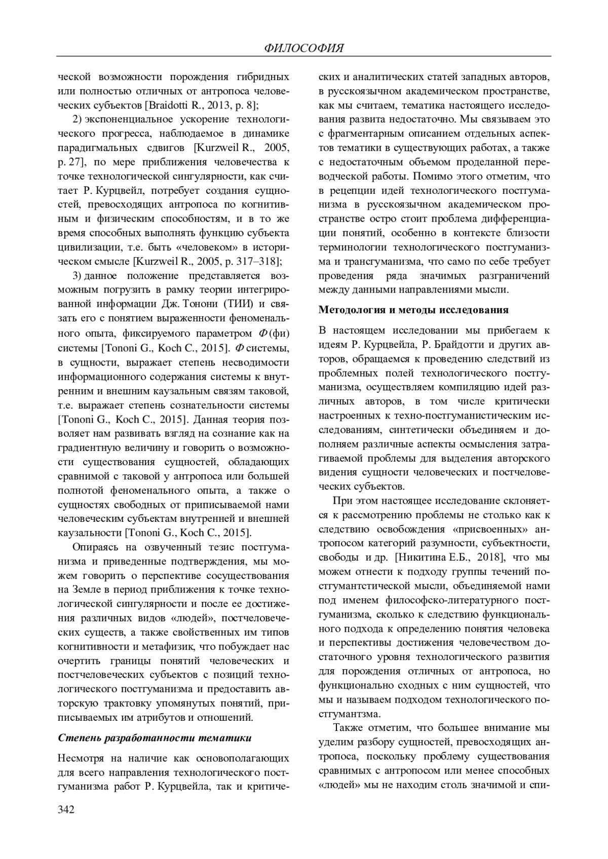 Ключевые фразы: человек, постчеловек, ПОСТГУМАНИЗМ, технологическая сингулярность, теория интегрированной информации, искусственный интеллект, нбик-технологии, р курцвейл, р брайдотти