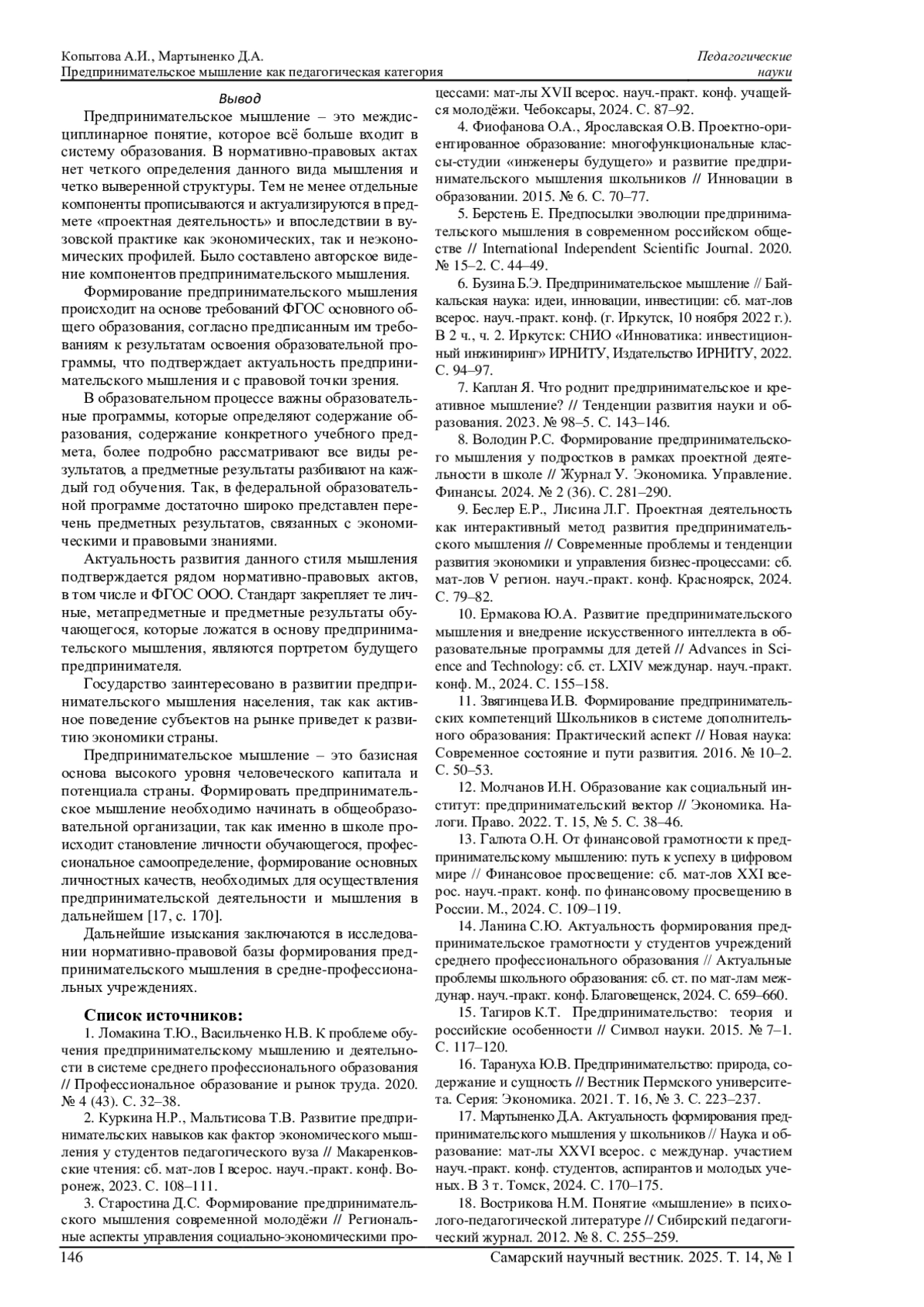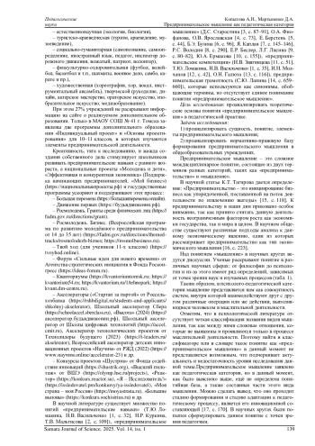 17. Мартыненко Д.А. Актуальность формирования предпринимательского мышления у школьников // Наука и образование: мат-лы XXVI всерос. с междунар. участием науч.-практ. конф. студентов, аспирантов и молодых ученых. В 3 т. Томск, 2024. С. 170-175. EDN: KRLSXV