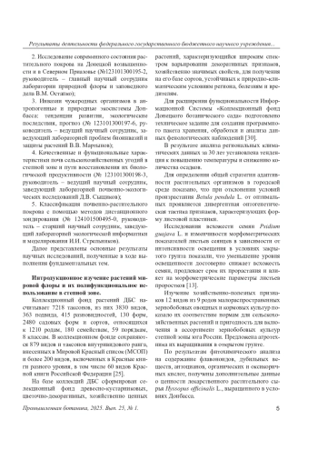 Статья: РЕЗУЛЬТАТЫ ДЕЯТЕЛЬНОСТИ ФЕДЕРАЛЬНОГО ГОСУДАРСТВЕННОГО БЮДЖЕТНОГО НАУЧНОГО УЧРЕЖДЕНИЯ «ДОНЕЦКИЙ БОТАНИЧЕСКИЙ САД» ЗА 2024 ГОД (2025)