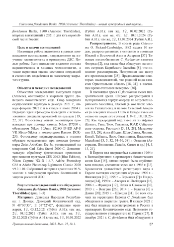 Ключевые фразы: coleosoma floridanum, araneae, theridiidae, пауки, чужеродный вид, первое указа- ние, донецкий ботанический сад