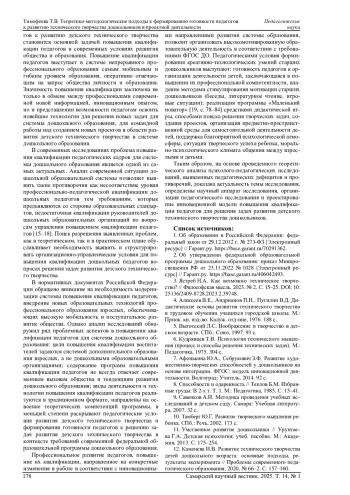 Статья: ТЕОРЕТИКО-МЕТОДОЛОГИЧЕСКИЕ ПОДХОДЫ К ФОРМИРОВАНИЮ ГОТОВНОСТИ ПЕДАГОГОВ К РАЗВИТИЮ ТЕХНИЧЕСКОГО ТВОРЧЕСТВА ДОШКОЛЬНИКОВ В ПРОЕКТНОЙ ДЕЯТЕЛЬНОСТИ (2025)